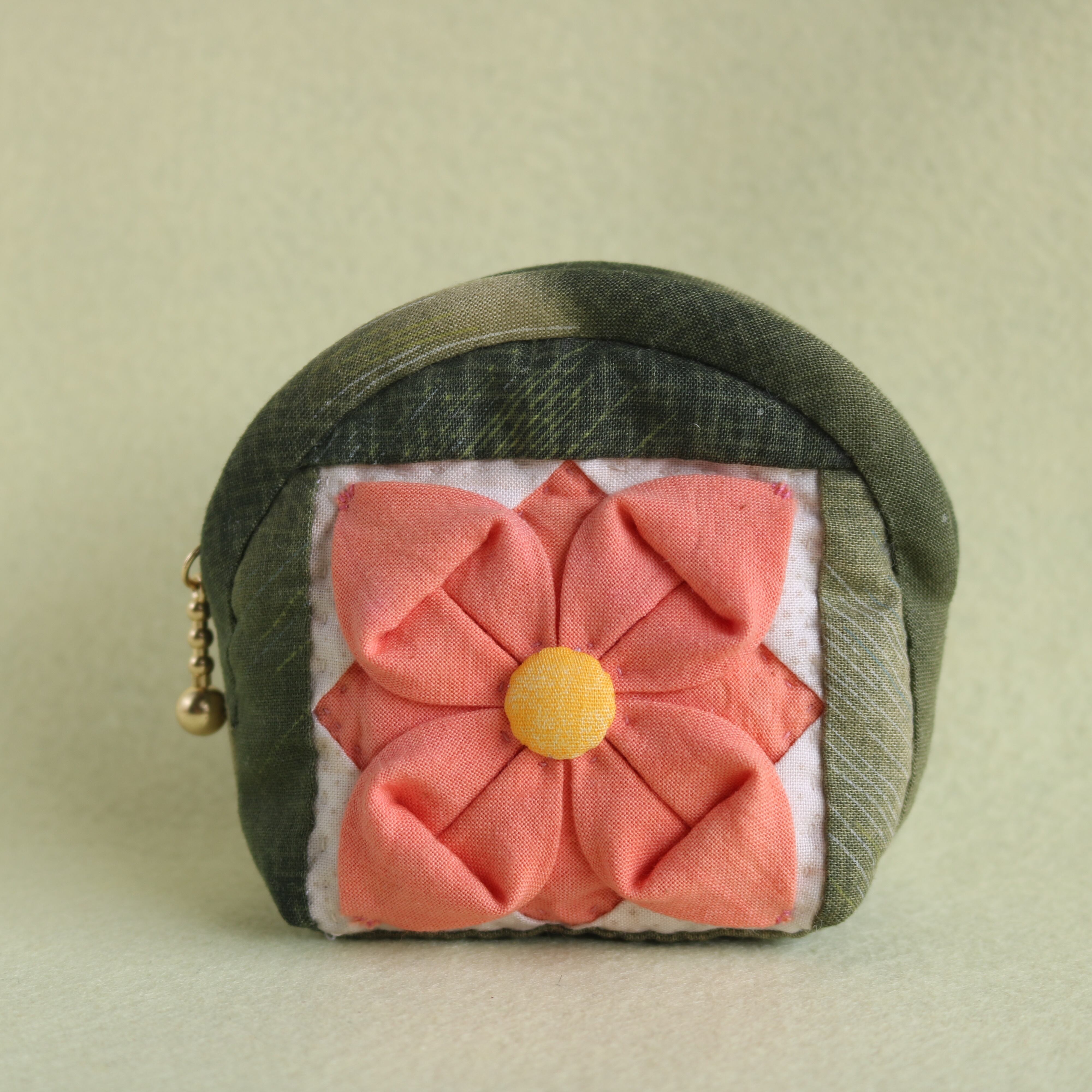 そんな折り紙キルトのお花のモチーフを付けてみました。